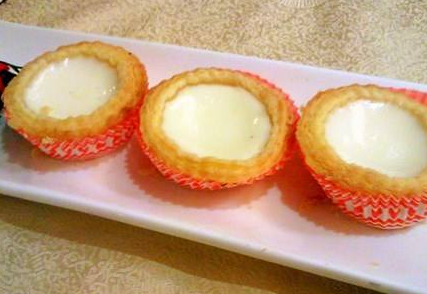 6、在蛋挞皮里放入适量自己喜欢的水果。