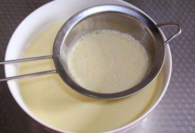 5、将拌好的挞水过筛一次。
