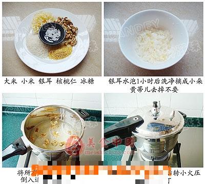 大米、小米、银耳、核桃仁、冰糖。