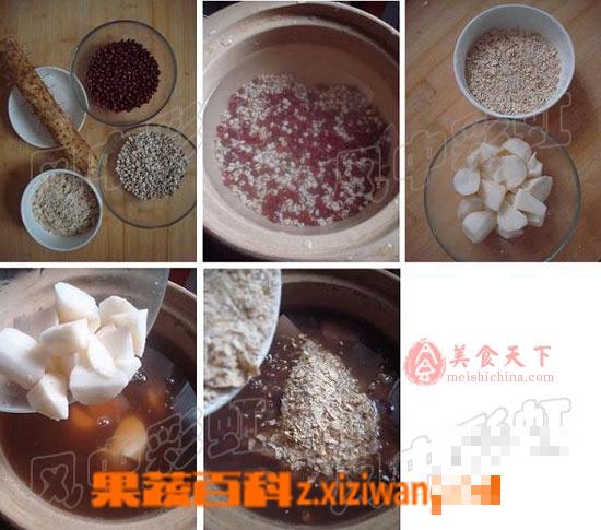 红豆、薏米各一把、山药1根、燕麦片适量。