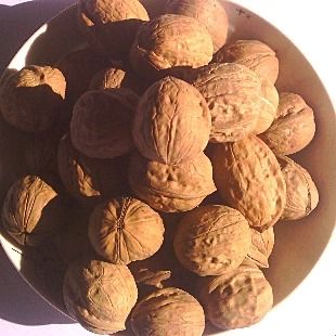 核桃亦称胡桃,胡桃科,落叶乔木,树高20-40米不等,树冠覆盖面可达400-1200平方米,初夏开花,单性、雌雄同株,柔荑花序下垂,核果称椭圆形或球形。仁富含油质,醇肥味美,可食用、榨油,也可入药,性温味甘,功能温沛补肾,主治虚寒喘咳、肾虚腰痛等症。营养丰富,是健脑之上品。积石山核桃栽植有2000多年历史,各乡镇均有栽培,品种较多,年产量在10万公斤左右,但以大河家镇、四堡子乡鸡蛋皮最为有名,这种核桃壳光滑而薄,似"鸡蛋皮",用手轻轻一捏即可破壳,脱仁容易,仁醇肥香甜,品质优良且出仁率高。产量较高,单株产量可达90-120公斤。但挂果树不多,没形成规模,产品供不应求,近年已引起自治县0高度重视,扶持发展这种地方特产,已在大河家、四堡子建立苗圃约十亩,每年可出苗2000余株,并已栽植500余亩,相信鸡蛋皮核桃这一地方名产一定会成为自治县特色经济中的拳头产品。(《积石山史话》董克义)