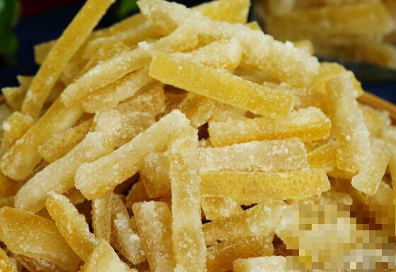 4、继续用中小火慢慢熬煮,在熬煮的过程中要不断翻动,防止粘锅等锅中的柚子皮变成透明状,而且表面沾有均匀的糖稀以后还有继续熬熬的柚子皮,表面的糖渐渐变为白色的糖霜以后才能关火,关火后取出酱面就能得到做好的柚子糖,做好的柚子糖最好放在冰箱里冷藏保存,想吃时随时可以取出食用。