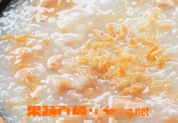 瑶柱十粒,料酒小勺,梗米五十克,鸡汤适量,生姜一小块,葱末适量。