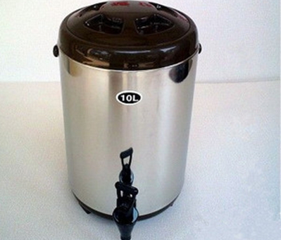 不锈钢保温桶,内胆采用304#不锈钢板冲制成型不会生锈,坚固耐用。一般用于盛放奶茶,饮料,果汁,牛奶等等,保持新鲜。是奶茶店,凉茶店必备之宝贝。容量有10升和12升两种。高度一般在44-45公分,直径为25公分。市场售价一般为170-300元之间,有带温度显示和不带温度显示两种款式。
