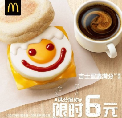 吉士蛋麦满分组合包含吉士蛋麦满分和McCafe鲜煮咖啡(小)一杯,推广日期自2017年11月1日至2018年1月9日,仅在大陆地区部分麦当劳餐厅售卖,具体以餐厅公示为准。上述食品仅限早餐时段供应,早餐时段开始时间以餐厅实际情况为准,至上午10:30结束。吉士蛋麦满分组合限时6元早餐不适用于麦乐送送餐服务。除食物外,其他物品(包括厨具、水果、蔬菜、容器)不在售卖范围之内。