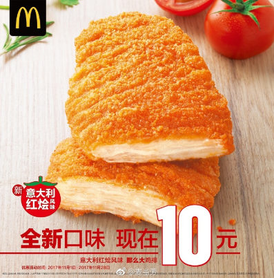 麦当劳那么大鸡排红烩味在2017年11月1日开始售卖,新品会有优惠特价,想吃的朋友们赶紧行动起来吧!!!