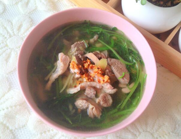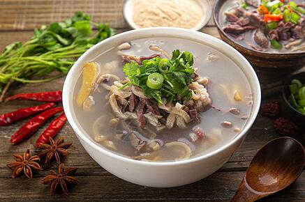 3.多味型:这是根据个人的喜好来决定的,有的人在汤里加八角、生姜、沙姜或者其他的草药。这是苗家“羊瘪汤”的变种,但在县城也很受欢迎。不管味道如何,配制时一定要留住羊味,不要让人感觉吃的是配料而不是“羊瘪汤”。
