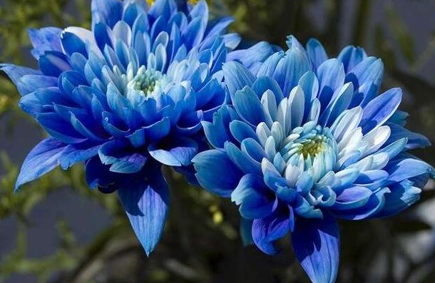 菊花6000万年前从蔷薇科变异而来,最初的菊花只有黄色一种,各种颜色的出现主要还是依靠现代园艺技术的人工杂交,各国园艺家为寻找培育蓝色菊花已付出几百年的努力,可惜不仅是菊花没有蓝色基因,就连菊花的近亲———菊科菊属的其它花卉,也找不到带有蓝色基因的。如果你看到的深蓝色的菊花,都是假的。目前还没有出现真正的蓝色的菊花