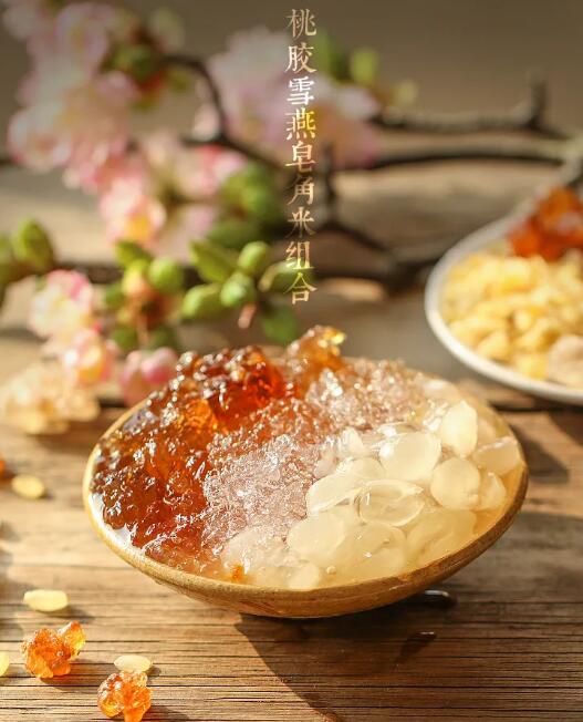皂角米雪燕桃胶具有一定的润燥安神、滋阴清热的功效。可以在一定程度上起到改善睡眠的作用,皂角米可以起到养心通便的作用。而桃胶则具有降低血压、降低血脂的功效,雪燕具有滋阴养血、润肠通便的能力。具体如下: